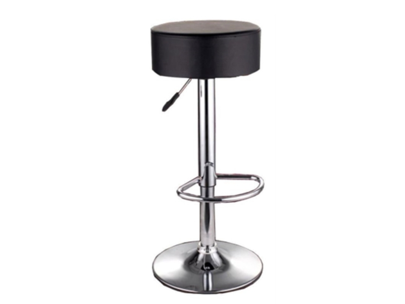 Барный стул черного цвета из кожзаменителя. Регулируется по высоте.