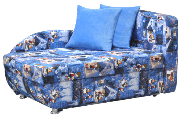 Современный молодежный стиль. Ровное односпальное место. Спальное место сформировано на основе деревянной рамки, на которую уложен эластичный пенополиуретан. В коробчатом основании имеется емкость для хранения спальных принадлежностей. Комплектуется декоративными подушками, наполнителем которых является синтепух.Требуется расстояние при раскладке от стены до боковой опускаемой спинки дивана. Механизм раскладки- "пантограф".