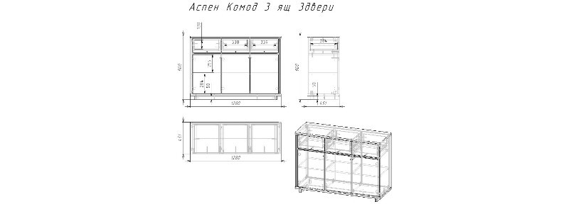 Комод 3 ящ 3двери Аспен
