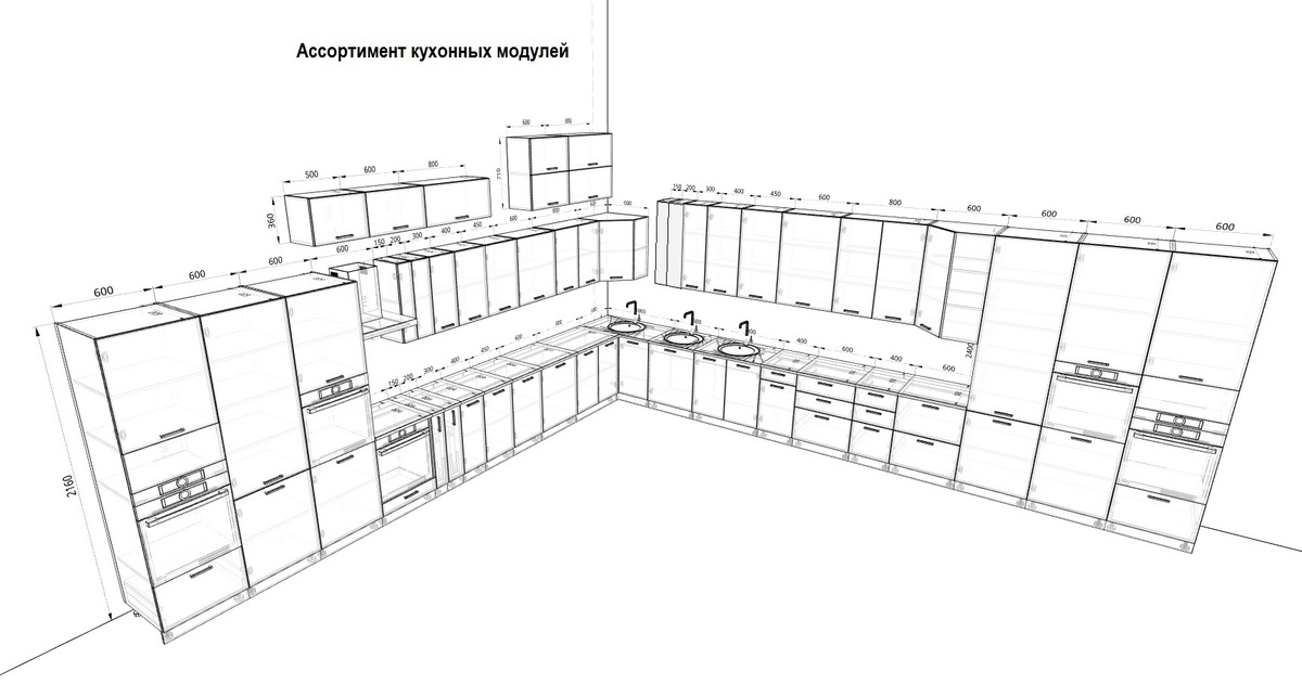 - Фасады со свесом – дают возможность использовать верхние модули без установки ручек, а также установить скрытую подсветку