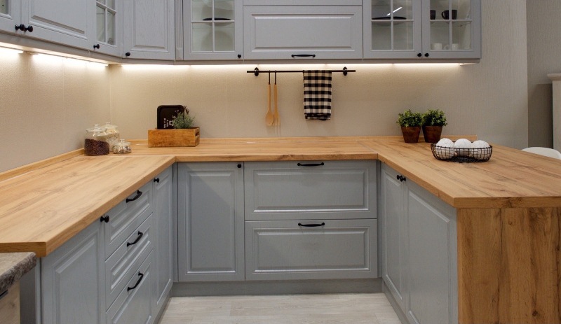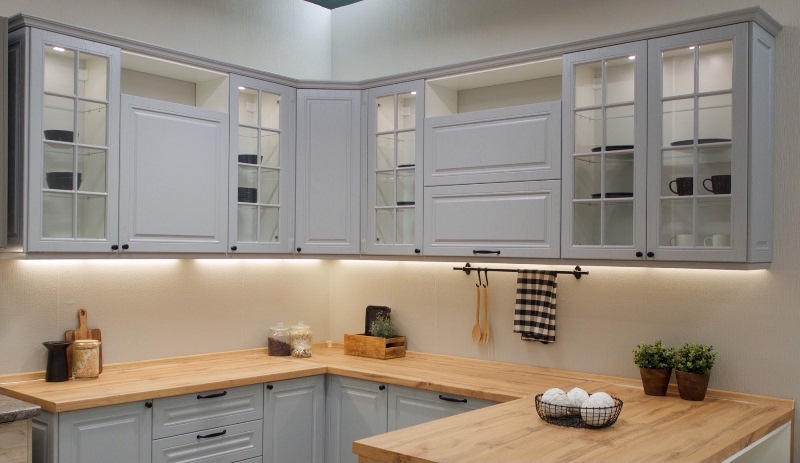 В стоимости: корпус, фасады, столешница, ручки стандарт, стекло