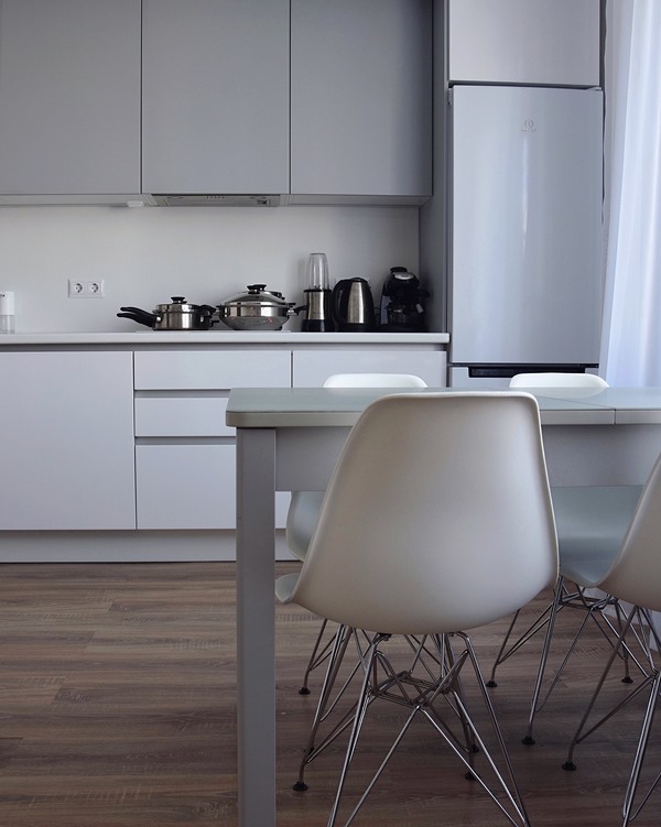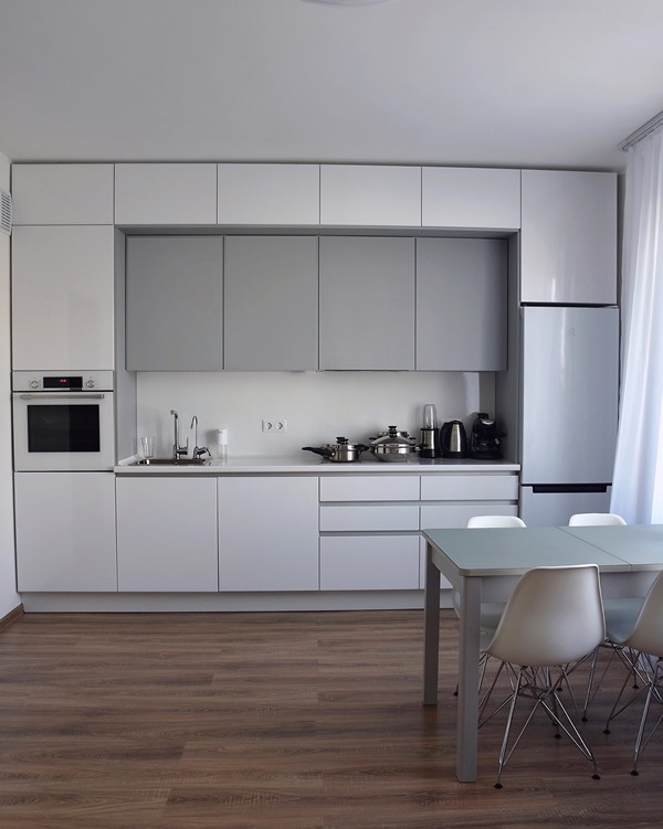 В стоимости: корпус, фасады, столешница, ручки (Shuko), доводчики.