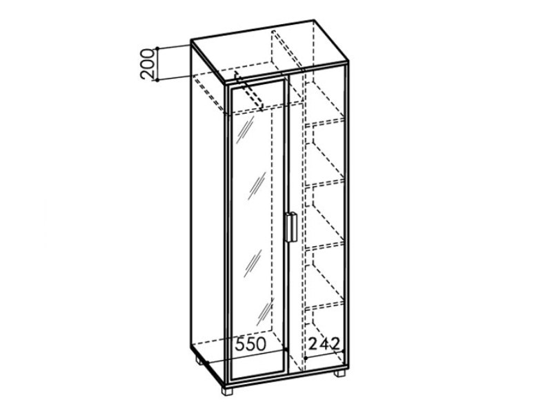 Оснащен выдвижной штангой. Одна из дверей по Вашему желанию может быть выполнена из стекла "Скрин", либо из зеркала.