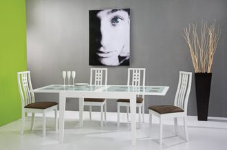 Основание-массив гевеи, столешница -закаленное стекло, матовое, без рисунка.