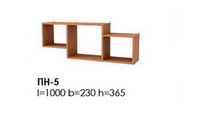 Полка ПН-5 имеет необычный дизайн. Вы можете повесить ее над компьютерным столом и размещать на ней различные подручные материалы. Полка имеет двухъярусную структуру.  Полка крепится на стенку, благодаря двум задним планкам.
