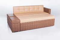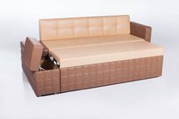 - Модель со спальным местом. Диван имеет механизм трансформации «дельфин», позволяющий получить ровную и оптимальную по площади спальную поверхность. Механизм трансформации весьма прост и требует минимальных усилий: достаточно выкатить из-под сиденья дополнительную платформу (выкатывается по направляющим) и, взявшись за специальные петли, поднять спальное место до уровня сиденья дивана. Тем самым удается получить сплошную и ровную спальную поверхность.