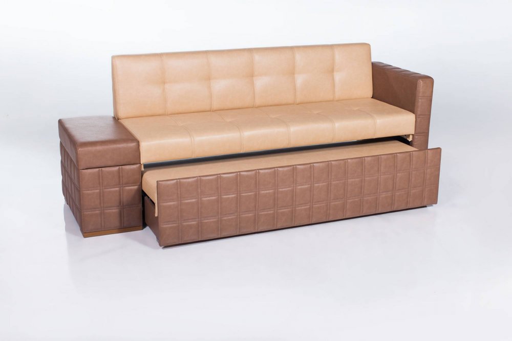 - Модель без спального места, с выкатным ящиком. Вместо трансформирующейся в спальное место секции может быть установлен выкатной ящик.