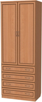 Очень практичная модель шкафа, которая представляет собой комбинацию платяного шкафа и комода с четырьмя вместительными ящиками. Верхняя часть оборудована штангой, на которую можно вешать костюмы, платья, в общем, все то, что носится сейчас. В ящики комода можно положить аксессуары, белье, любые мелочи.
