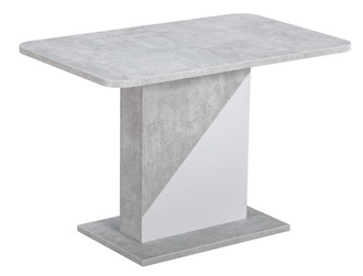 Большой раскладной обеденный стол Акцент на тумбе серого оттенка. Столешница раскладывается от 110 см до 145 см, вставка светлого цвета.